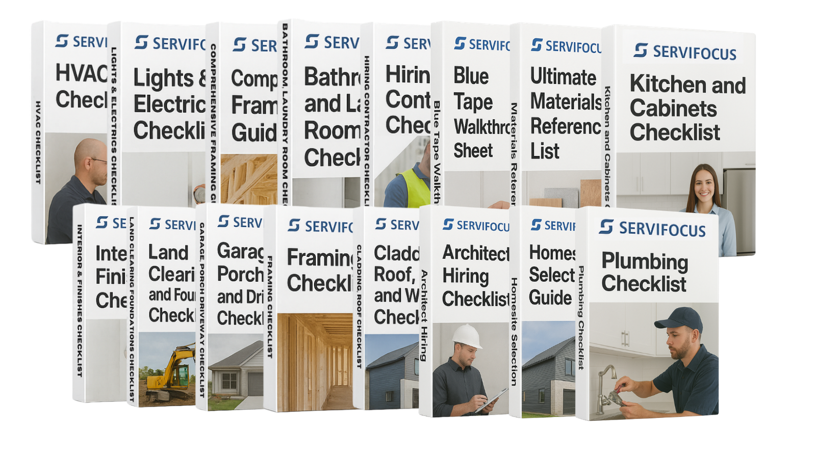 With the ServiFocus Essential Checklist plus 5 Pro Guides, you’ll cover every phase of home construction—ensuring nothing falls through the cracks.